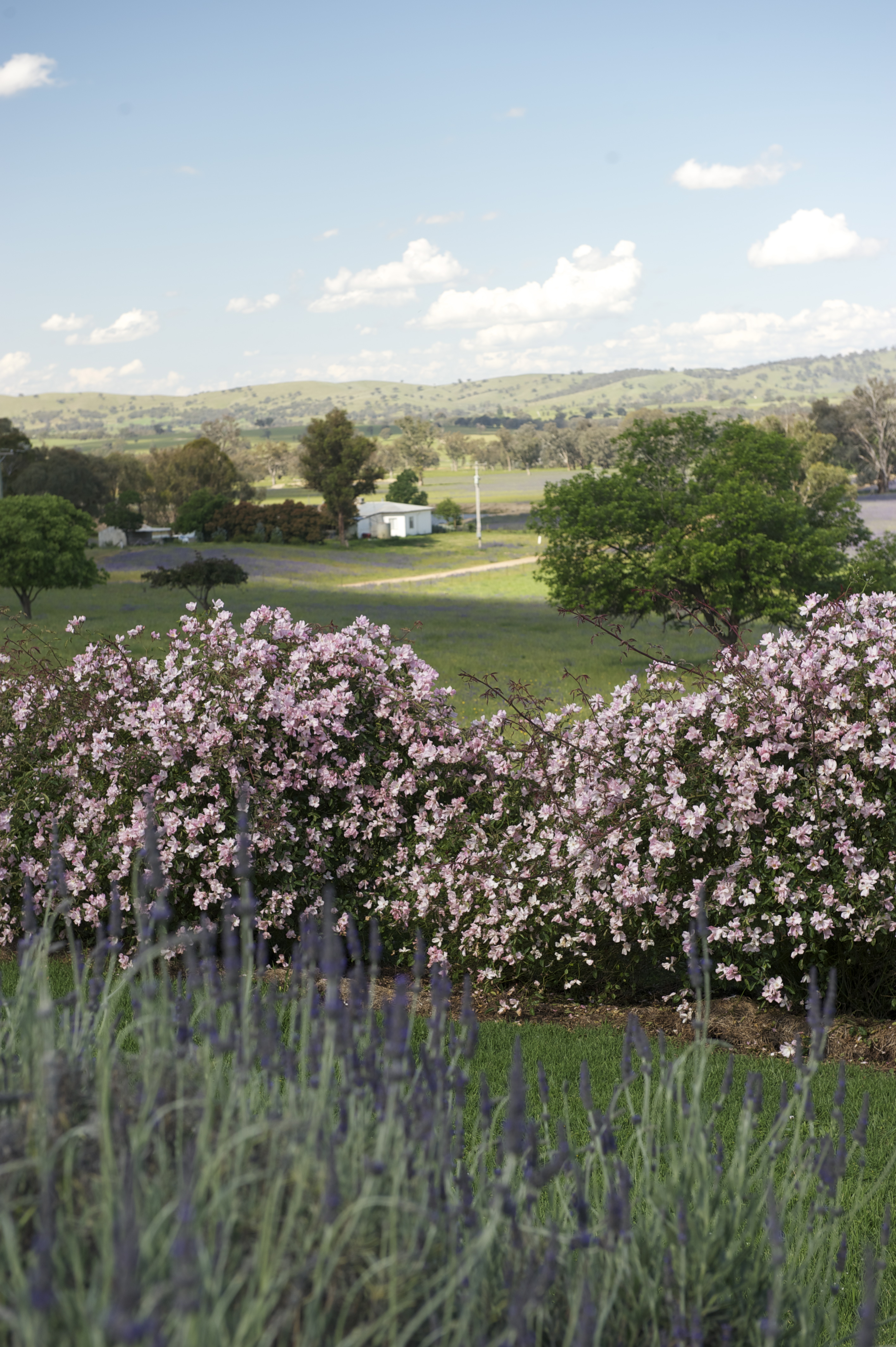 Kyeamba, John’s family farm, is a large ( in my book at least, though it has been much larger) property just off the Sturt Highway. It has wonderful views and his sister-in-law has developed a beautiful, English-style, garden with panoramic views over the paddocks.