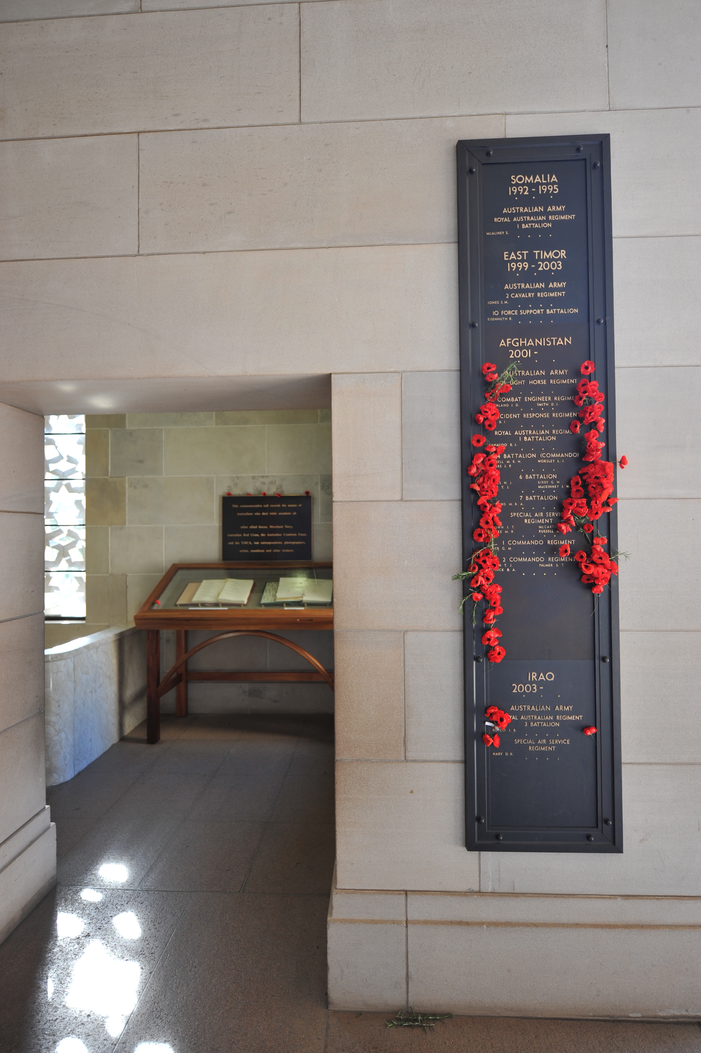 Canberra is only a little over two hours by car from Wagga so we arrived in the early afternoon and got the business John had come to do out of the way before beginning to enjoy ourselves. As a result we were at the National War Memorial just before it closed on the day after Armistice Day. It is a beautiful tribute to all of the armed forces, including the nurses and I thought the way they had poppies along the walls was a lovely touch. It was almost a privilege to be there for the sounding of The Last Post as they closed the doors that day – and even more poignant because of the nearness to the anniversary of the end of a war. I was touched, too, by the recognition of the newest fatalities in Afghanistan and Iraq.