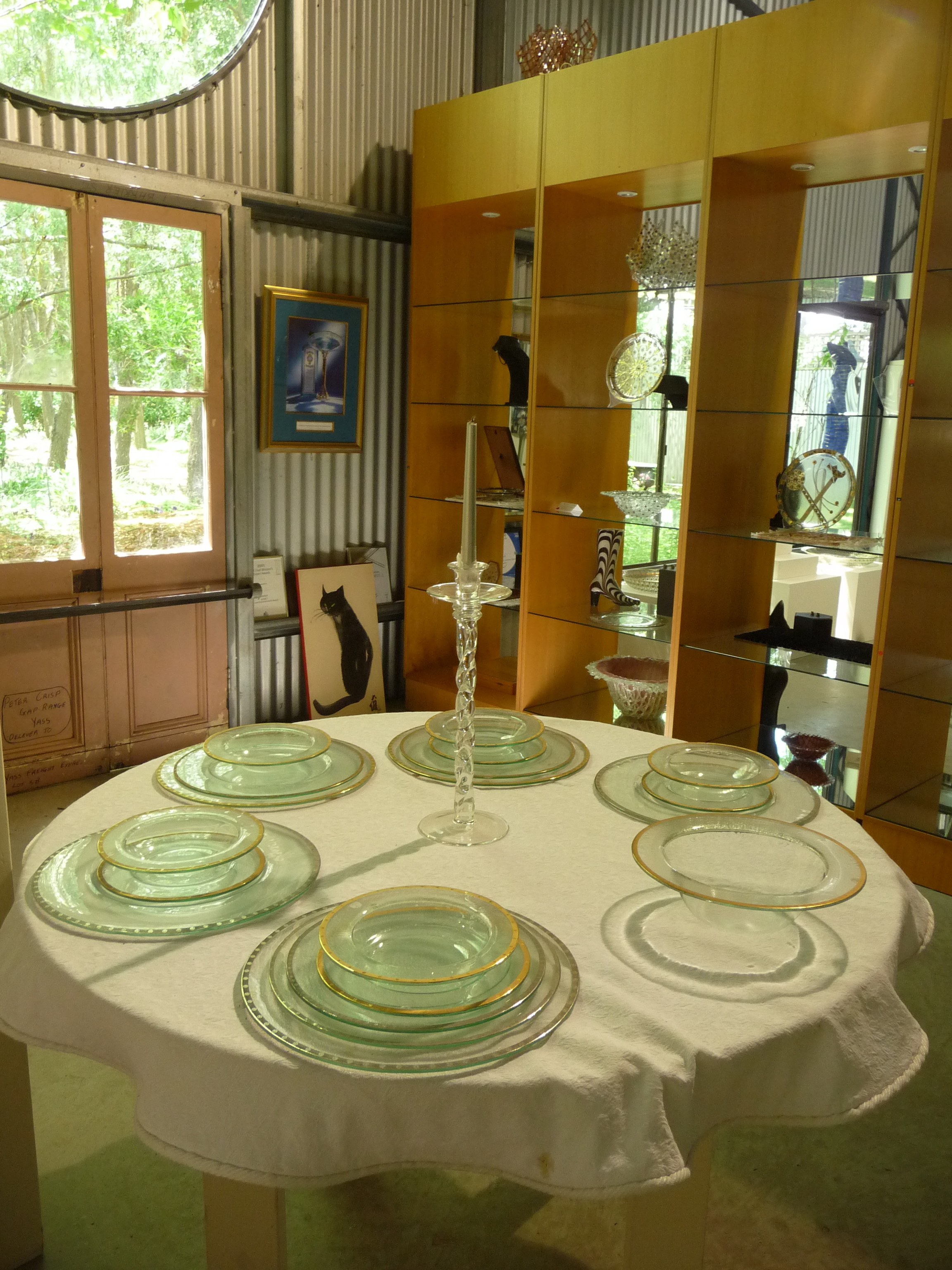 We were able to met Naomi’s brother and sister-in-law on Thursday evening and on Friday set off for Canberra. Although the route was along a major highway ( a real one!), we found a couple of interesting stops. The one I found fascinating was the studio of Peter Crisp – a glassworker who has produced for the Royal Family and for Tina Turner, to name but a few. He was a great name-dropper mentioning the Bushes as well as various stars and celebrities from other walks of life. his work is very varied, which I find quite unusual in this kind of artist and I was interested to see the roughness of some alongside the delicacy of others.