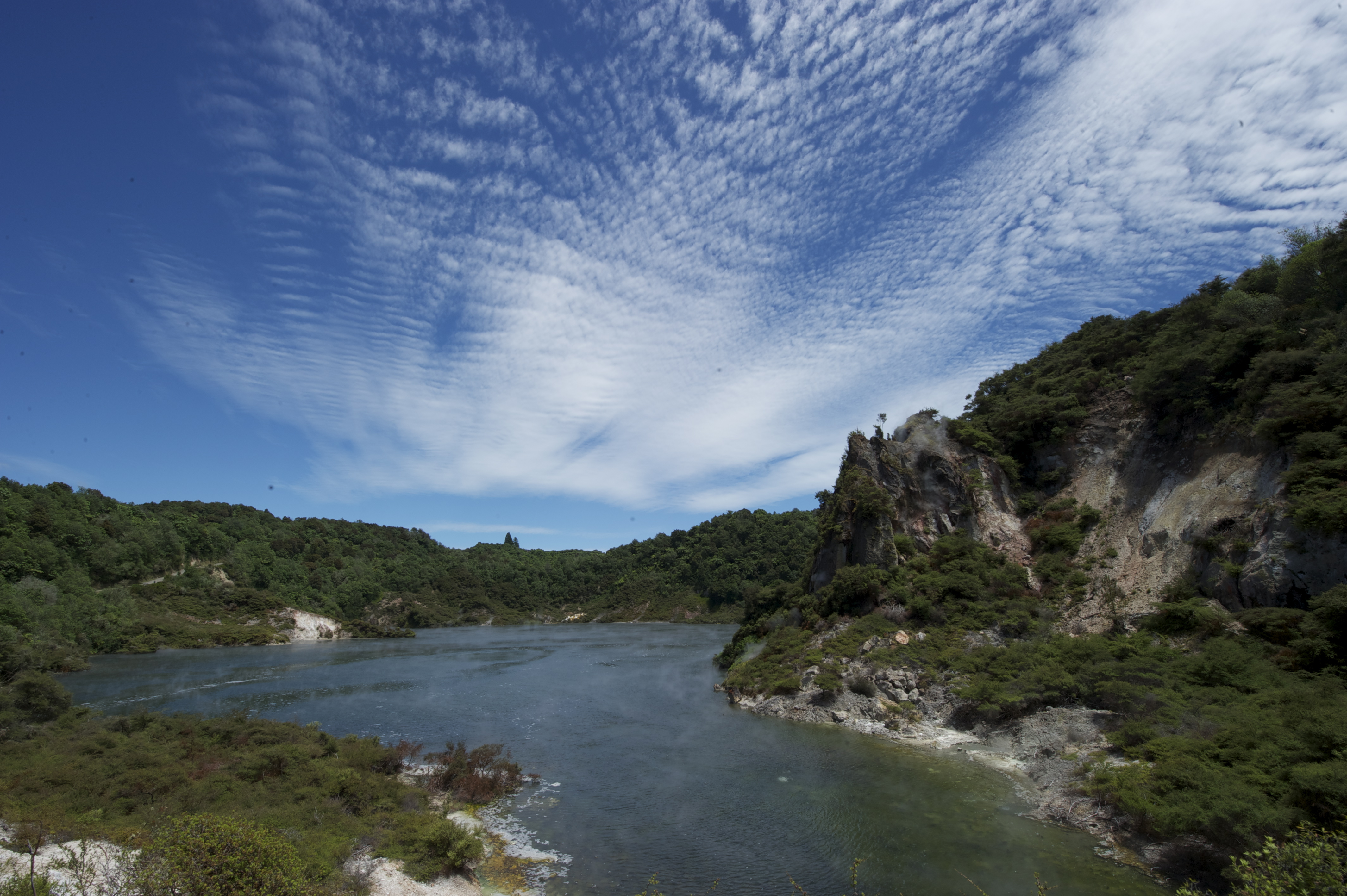 Rotorua was next on our itinerary and I had high expectations of it despite everyone’s reservations. So off we set via some of the coastal scenery we had already enjoyed and then on through the hills to the town renowned for its geo-thermal activity. This was different from anything I had seen before and we soon decided to stay a third night. The accommodation we found was right on the lake away from all the sulphuric gases unless you walked past a drain and the hotel had a spa with its own thermal pools. For me, apart from its mud, this place will be remembered as the city of deals! Great hotel prices and spa offers to take advantage of. The redwood forest was an unexpected delight; the museum, surrounded by bowling greens and croquet lawns, was well presented with helpful interpretations and some great views from the roof, while the drive later in the week to Lake Taupo took about six hours instead of the two predicted by Google Maps because there were so many interesting places to stop along the way. We walked to the crater of the volcano and through the valley covered with ferns and native trees and wondered at the range of colours in the water and rock formations.