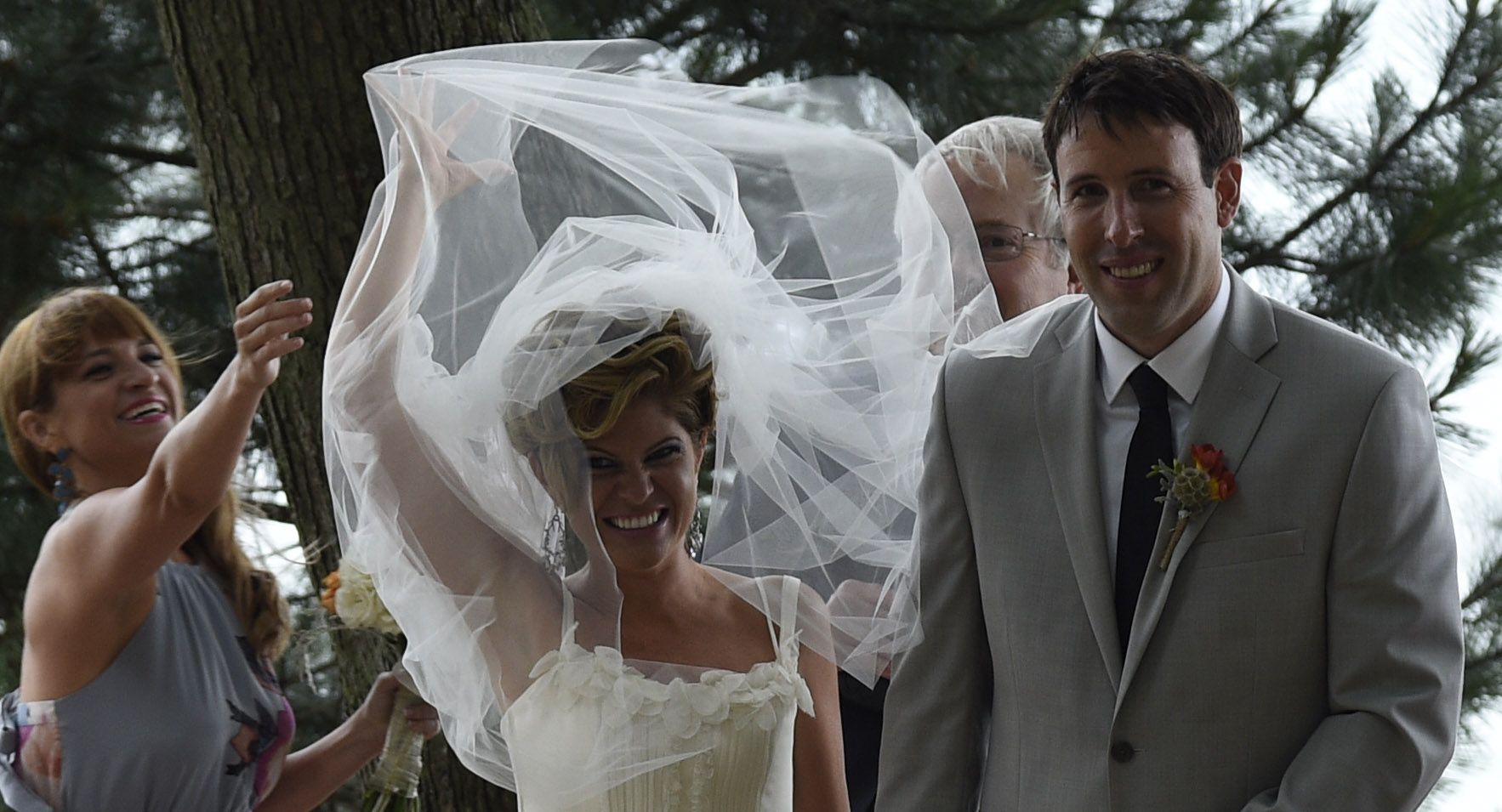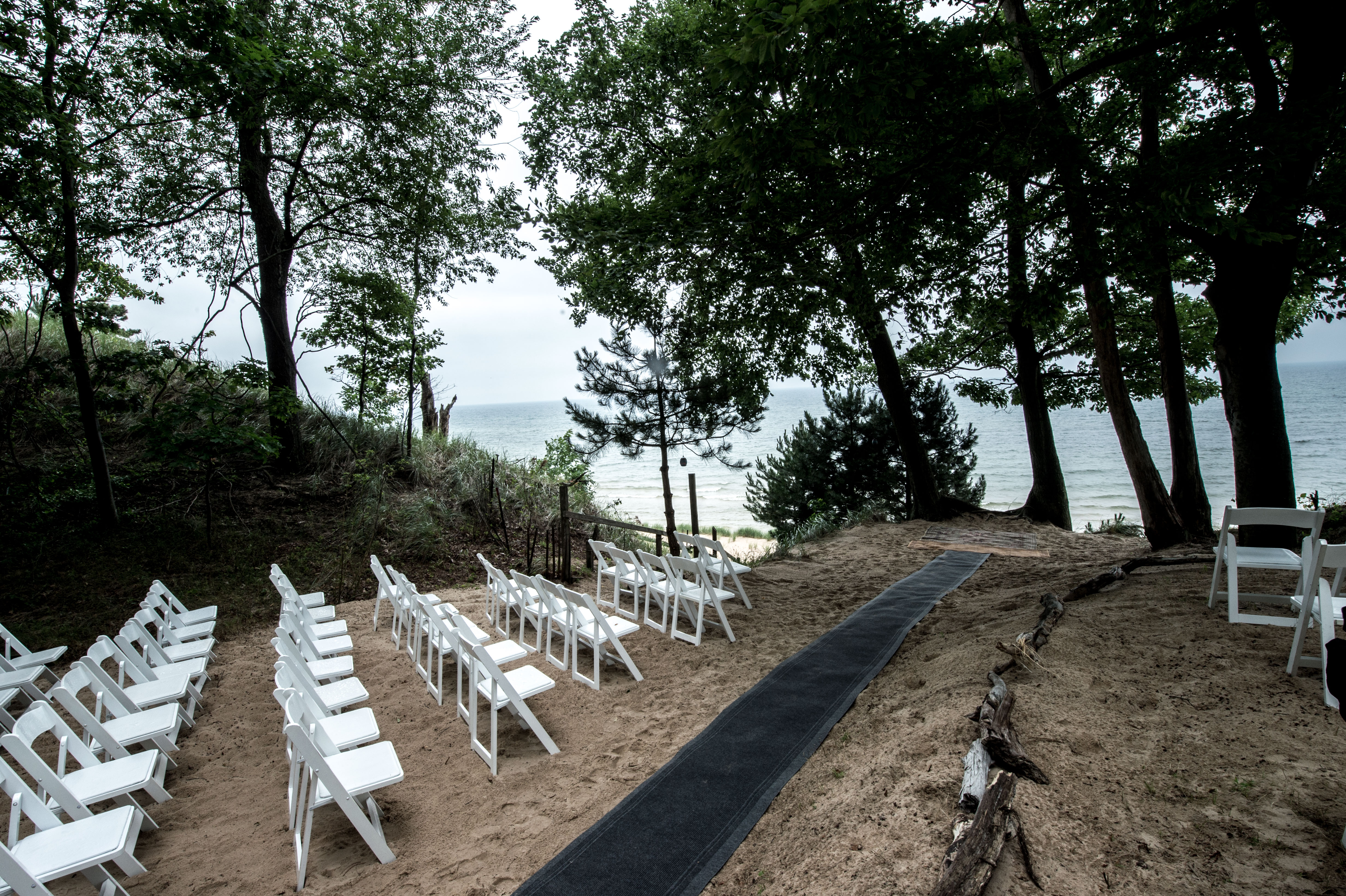 The ceremony took place right on the shore of Lake Michigan on the most blustery day of our stay. The skies remained grey – but not the moods. Despite a fairly bleak view of the lake, spirits were high; smiles were there in abundance as the windswept bride took her place beside her groom, her hair styled by an uncle whose sole aim had been to make her as beautiful as he could for such a special occasion – success!