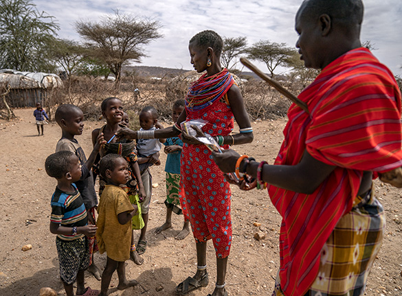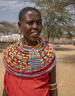 Just a couple of stops to photograph Mount Kenya which had appeared from behind the clouds for us and another at a roadblock where our driver was challenged and made to go to the back of the queue. Turning left off the main road we made our way to a Samburu village to see the dances, the houses, the handicrafts and to have some fun with the children, some of whom, even those who were little more than toddlers, wanted high fives and a photograph taken. Two of the men who showed us around told us they were Christians and I asked how that affected their living according to local culture. The best example was that a man can take numerous wives- the chief in this village has four -but the Christian man takes just one wife.