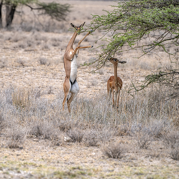 Next was  a small group of gerenuk ( giraffe impalas). Neither of us had heard of them before but they are delicate creatures with spindly limbs and neck and pretty little heart-shaped faces.