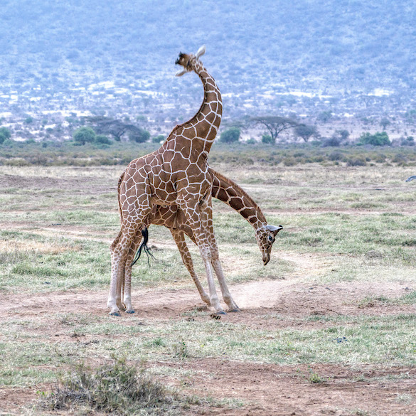 The day began with a glorious sunrise and Chris has us down by the river to get the reflections. Then we went in search of whatever we could find and during the morning came across a group of giraffes exerting their manliness again, using their necks to gain the advantage. You could almost see them stop and think about strategy before diving into action. Their moves looked a bit like fencers parrying.
