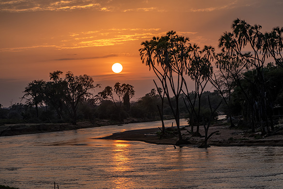 As I write, we’ve come to the end of our time in Samburu. I’m sitting in a smart four poster bed surrounded by mosquito netting. We had two days of amazing animal sightings accompanied by good food, great service and some fun riverside happenings. There were no elephants to watch at lunch today, but there was one called Barack in the camp this afternoon. He was about ten yards away from our tent so we were accompanied to lunch and make again to ensure our safety.
