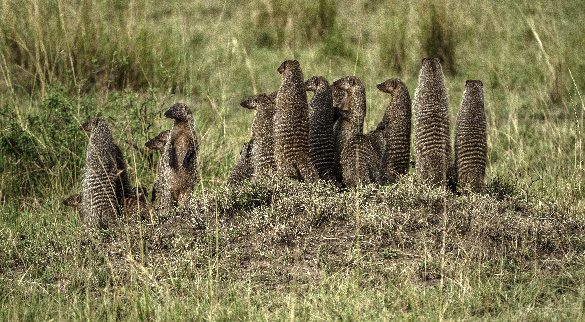 Chris Kinoti is not a man to be beaten. His whole aim was for us to see at least one crossing during our time in the Mara. Though he did allow us brief stops to photograph the young giraffe we saw being groomed – probably by an older sibling – and the mongeese I thought were meerkats.