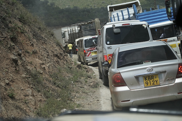 It was as we approached the escarpment that things began to be worrying: there was an extremely long queue of traffic, most of it heavy trucks, seemingly at a standstill. Initially, Chris thought he would turn back but then there was some minor movement and he decided to stick with it, so we edged our way up the inside of the main line of traffic and then the outside of it until we found our place in the main lane and moved along gently with the others. On that infamous road, there were no fewer than four breakdowns and the traffic had to crawl past each one in turn. Many of the tourist vehicles, of course, were carrying international visitors on their way back to the airport and drivers were becoming anxious about getting them to flights on time. The tourist drivers worked together to make sure they gained as much advantage as they could encouraging HGV drivers to give them priority wherever possible.