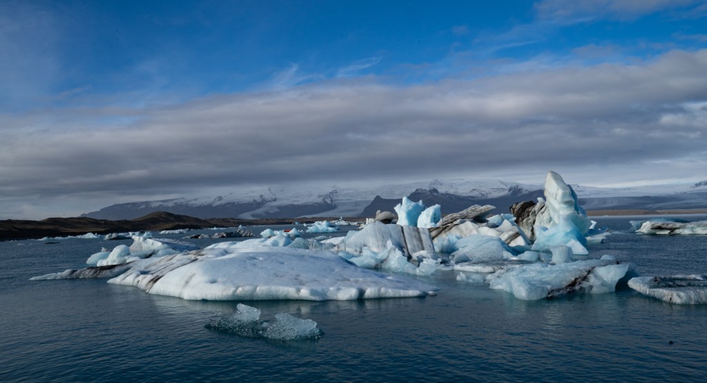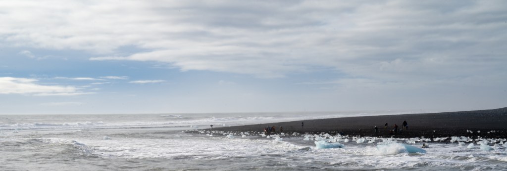 Having lunch at nearby Fjallsarlon provided one last opportunity to grab a panorama of the glaciers: the photo below is a five image panorama created in Photoshop and while it may not be the best photo ever, it gives the idea of where we were.