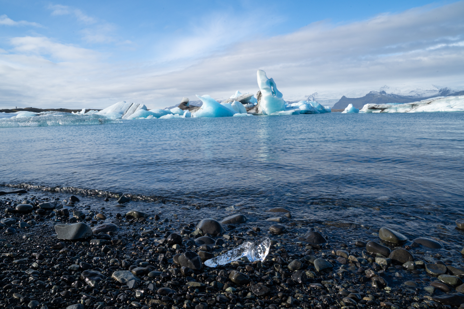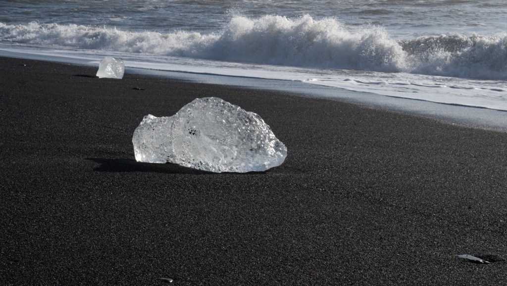 One significant stop in our journey was to be expected as it was a place we had all enjoyed on our visit earlier in the week, despite foul weather – that was Jokulsarlon. This time we visited the lagoon possibly at its best and the beach to the east of the river. Once again, there were some great shots of the ice and some interesting experiences as growlers calved around us and young people screamed in excitement .