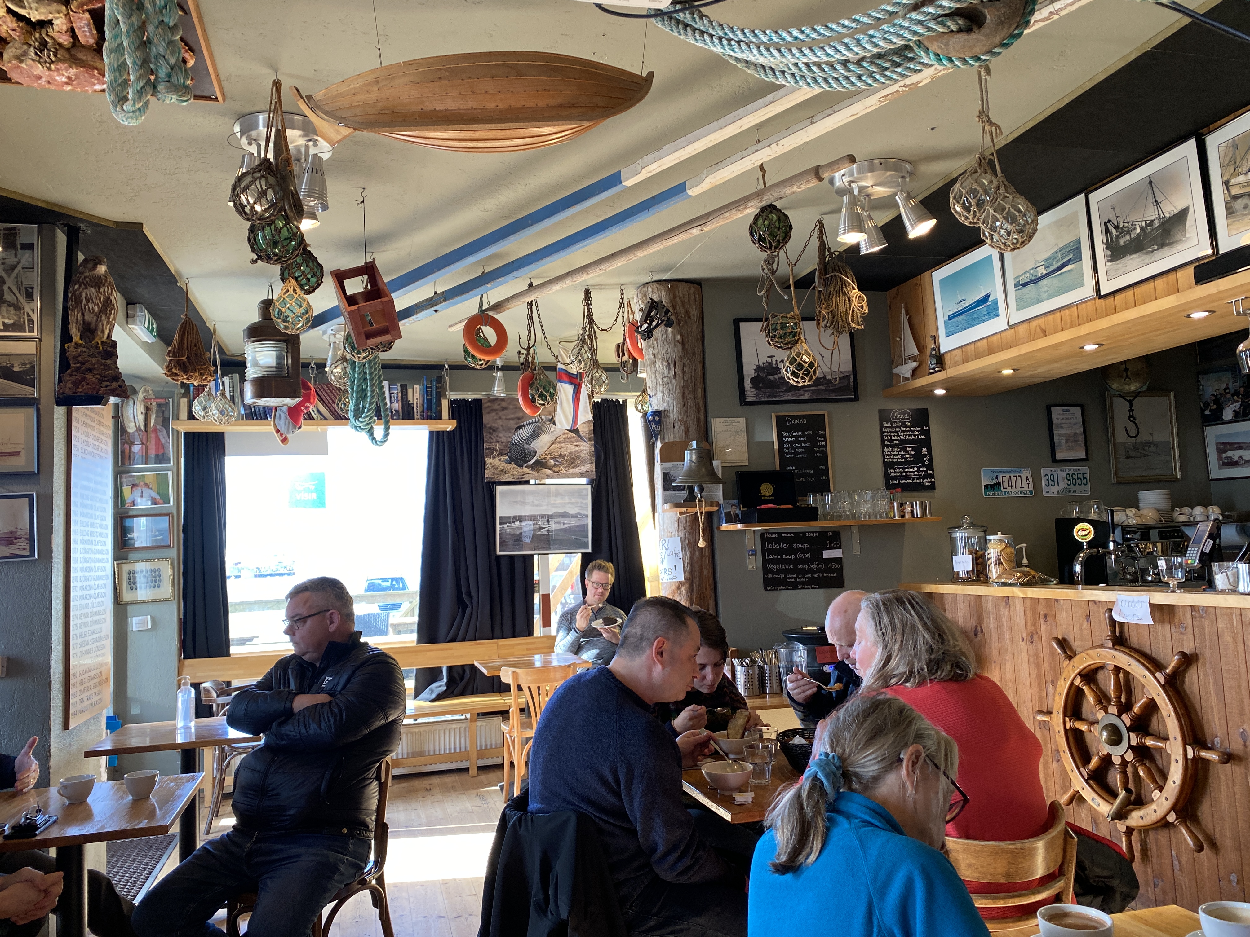 Our final stop was for a coffee break. But we were taken to a Kaffi House called Bryggjan in Grindavik harbour. It’s famous for the lobster soup that is served – justly famous, I reckon. I enjoyed the soup much more than the clam chowder I tried in the US! And it was a fitting way to end an amazing few days in a country where fish is so central to life and so fresh in every restaurant.