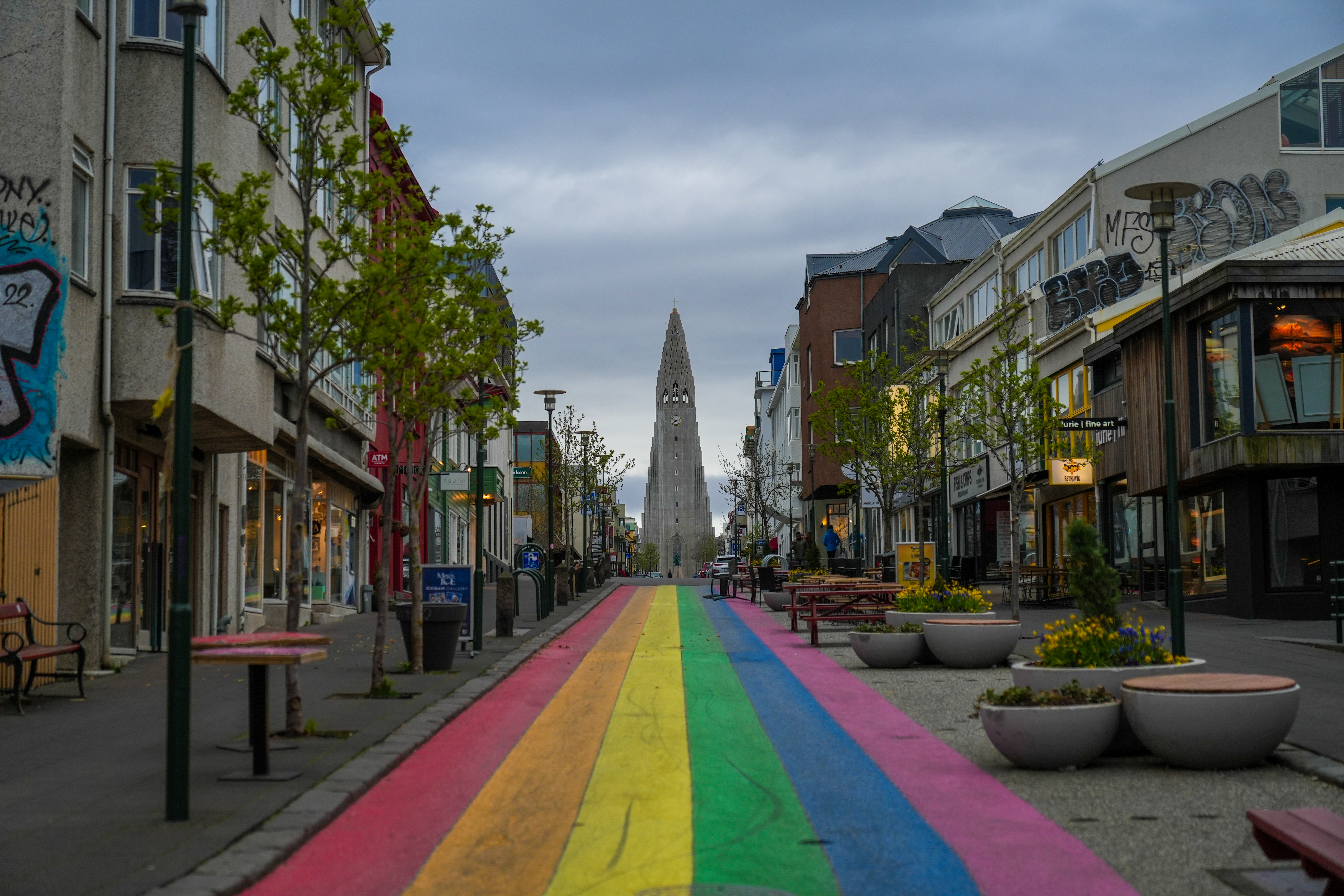 Walking back into the centre to deposit our cameras and make for dinner we came across the classic view of the church, Hallgrimskirkja, with the rainbow road in front of it