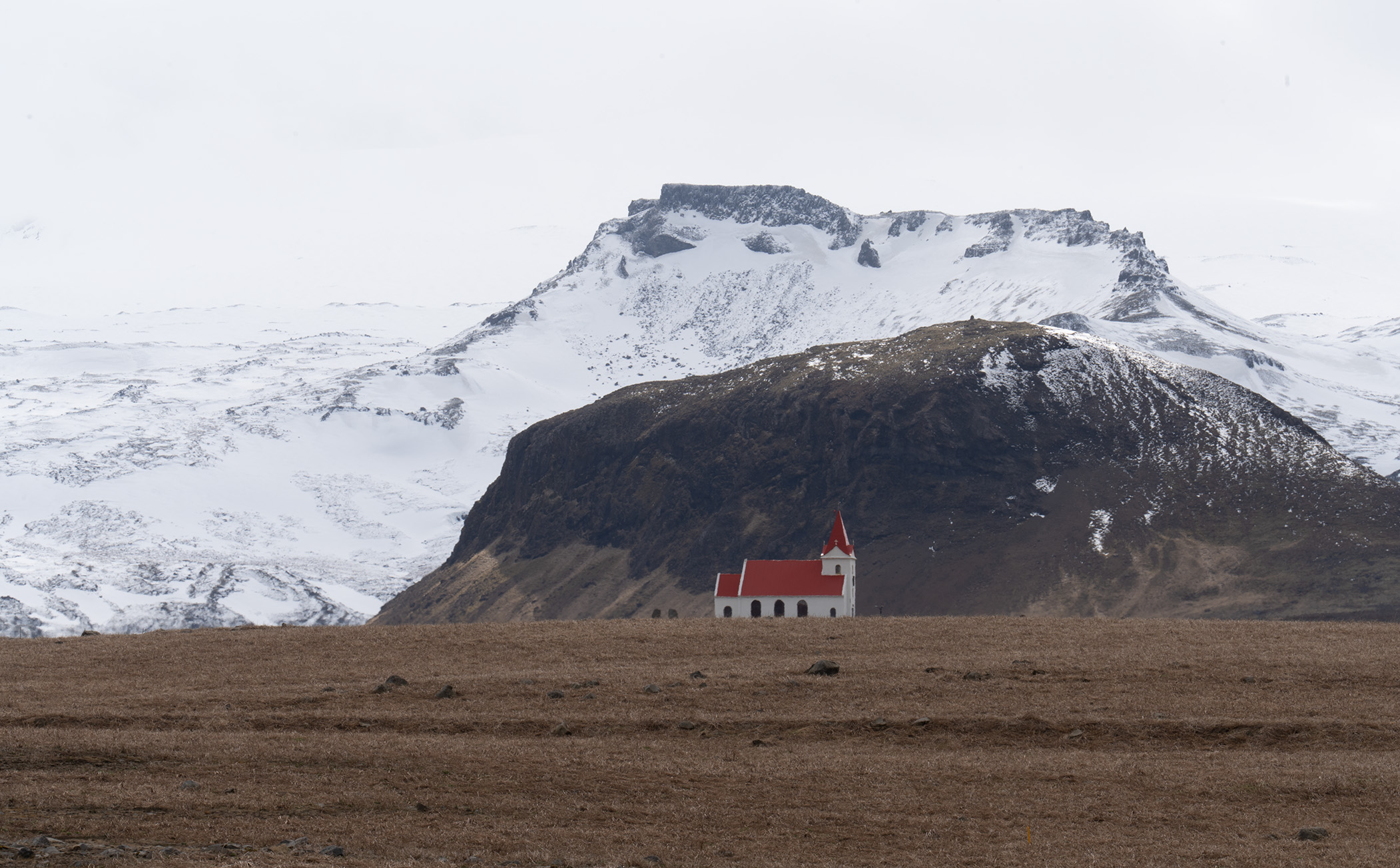 The distant red roof of a church took our attention, making us wonder about the community it served: there was precious little sign of habitation!