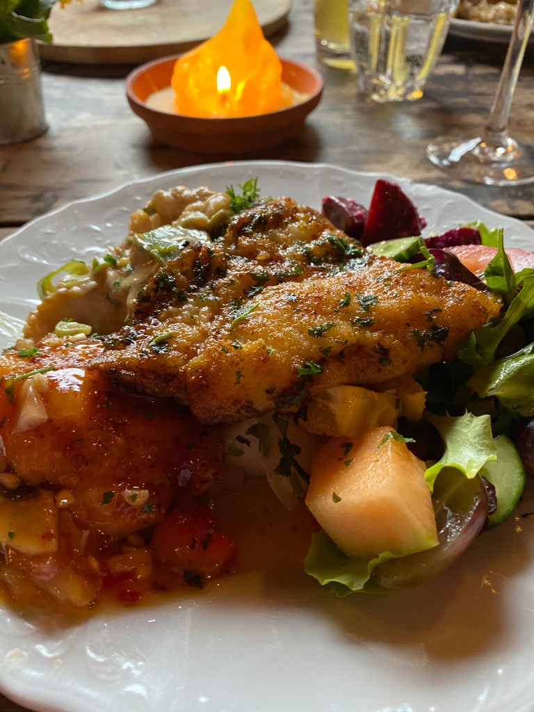 What a treat!!! Nothing but fish and vegetables. Fish soup to start, then a whole variety of fish cooked in different styles and with a variety of salads. Although it was ‘ come back for more as often as you like’ buffet style, I could only manage one full plate. But I really enjoyed what I had!