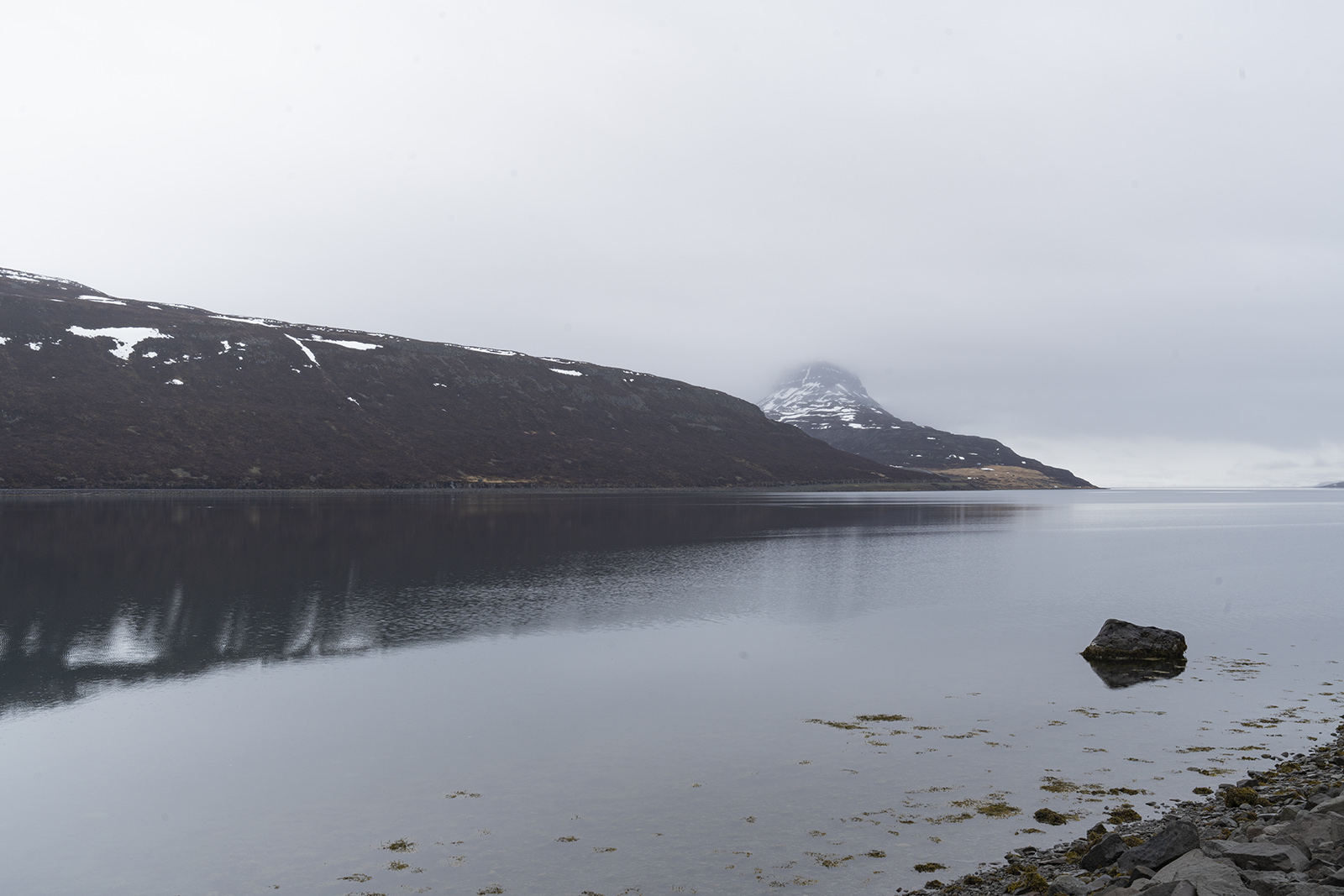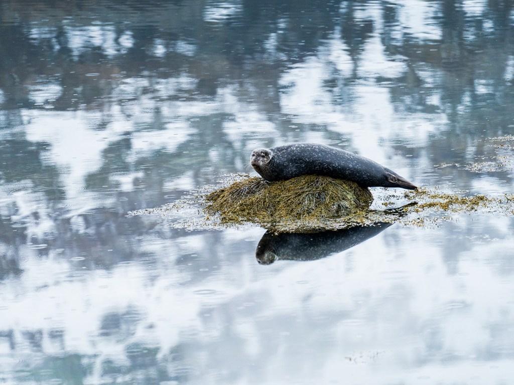 This was a day of driving along both sides of some long fjords as we wended our way to the next destination: a hotel in Laugabakki, a very small community in the middle of nowhere – and which seemed to be being used as a conference centre by the police (at least, we don’t THINK they were looking for any of us! If they were, they changed their minds!). There were a few notable photo ops along the fjords, including a fun encounter with a seal pretending to be the Little Mermaid and some rainy reflections.