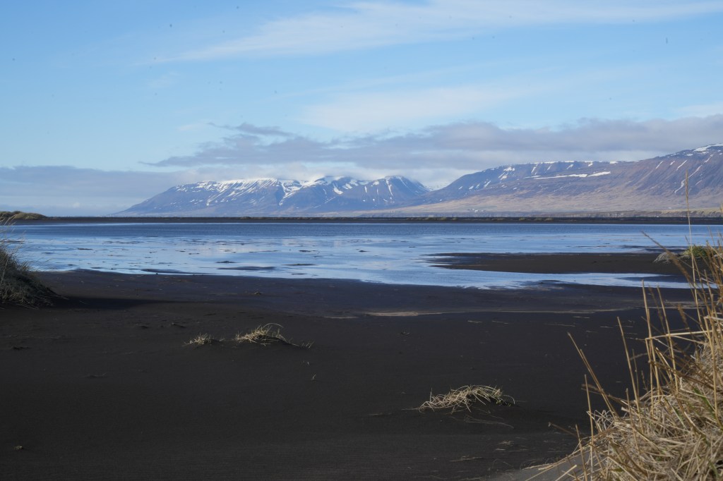 A little later, despite frequent snow showers, we spent time on a back sand beach surrounded by snow covered mountains. There were opportunities for all sorts of landscape shots and for some closeups of the grasses and the textures on the beach.