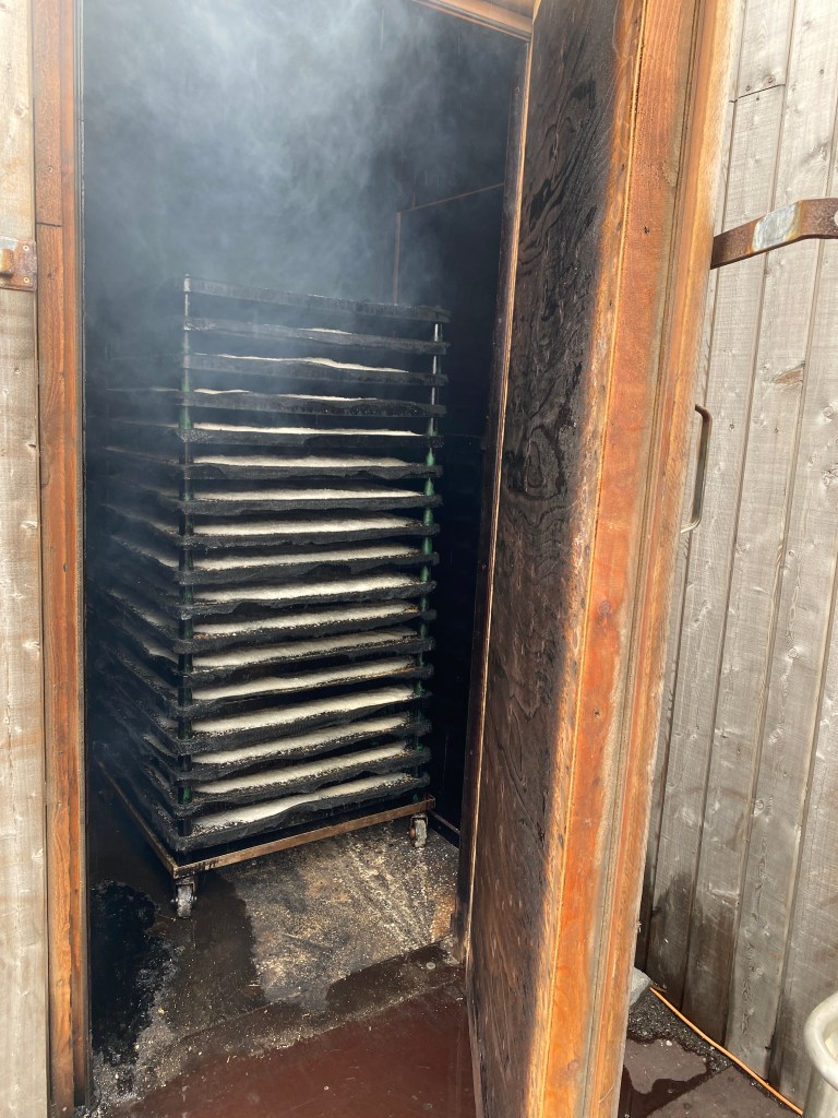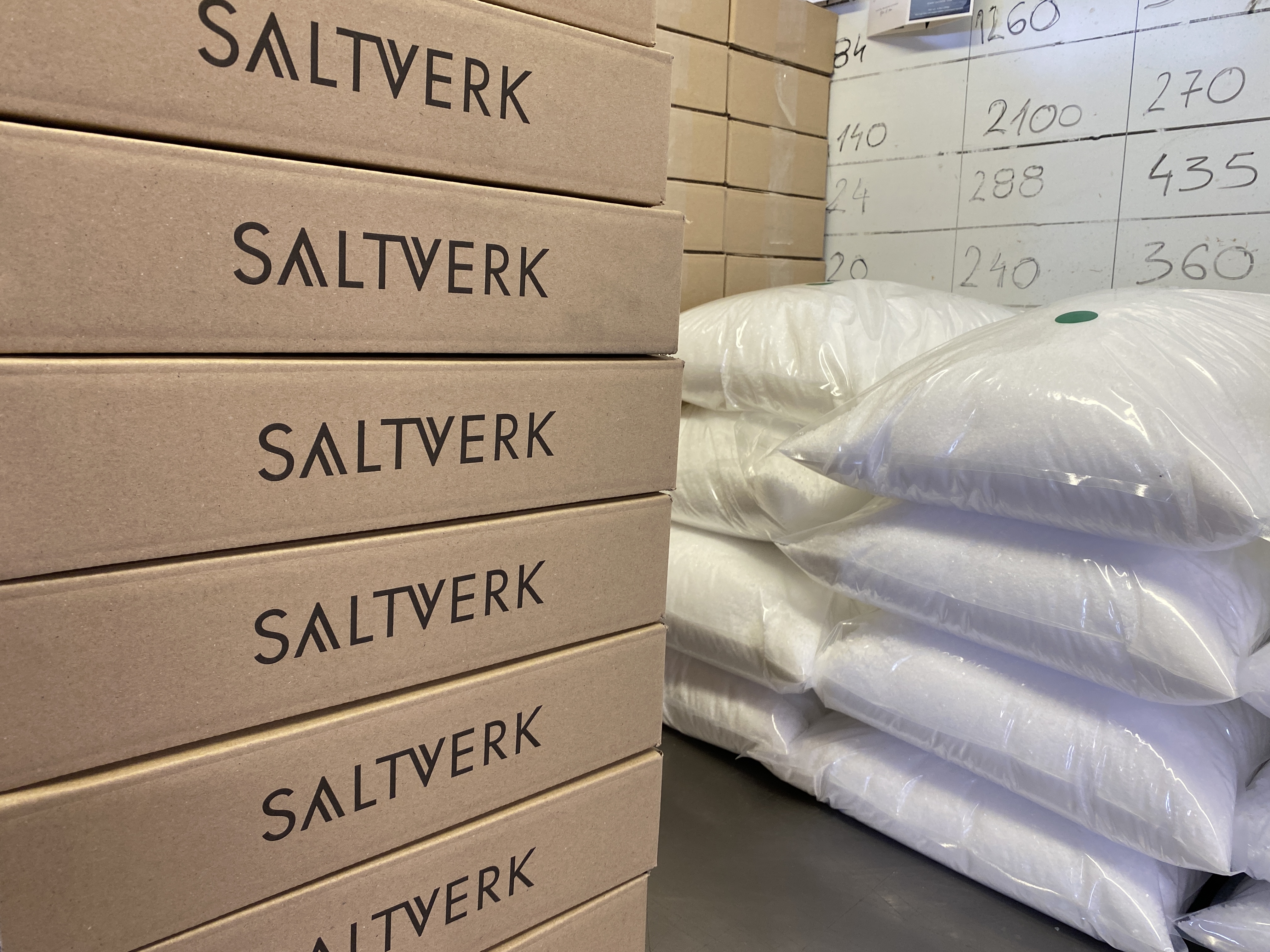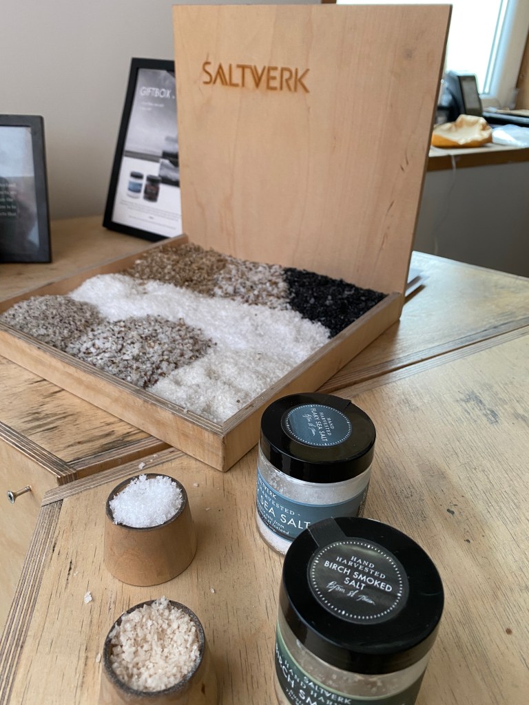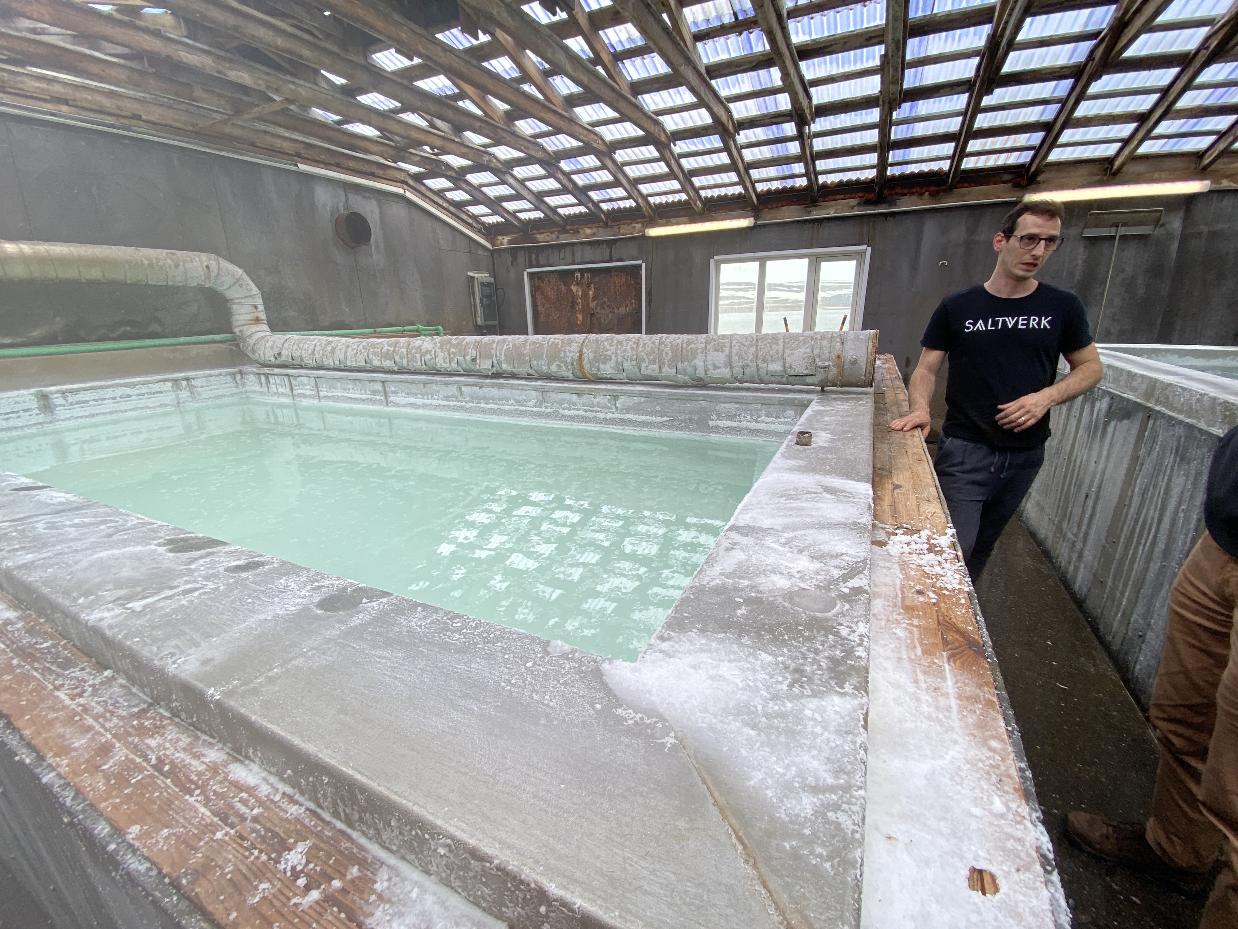 Leaving the car park, Paul set off down a road that seemed to be a dead end and we began to ask why. He said, enigmatically, that he was taking us to see something that at least one of us would find interesting. We all (I think) assumed that as it was going to be something to do with fishing, but no, Paul had remembered the existence of a salt refining centre at the back of the hotel and as we drew up alongside the building there was the Saltverk van for all to see. We were given a guided tour by the Croatian man running it and were pleased to find we’d paid the right price in the little shop in Bjdudal a couple of days earlier.