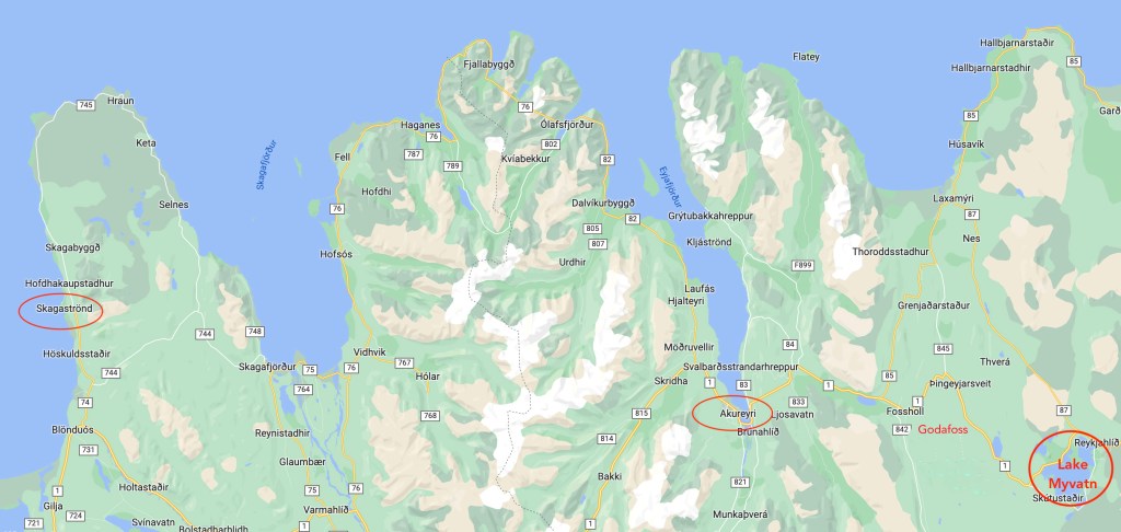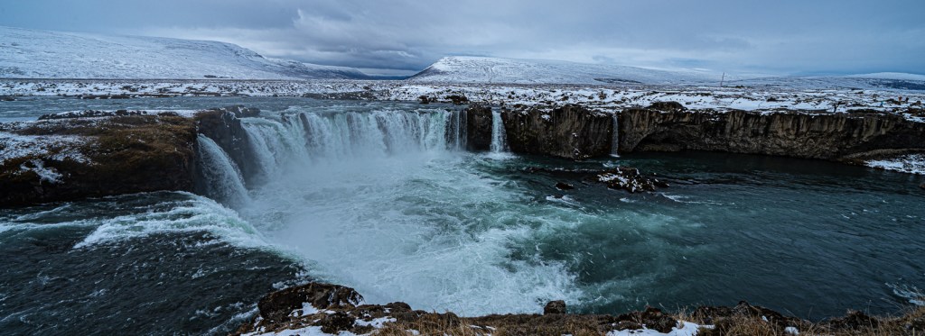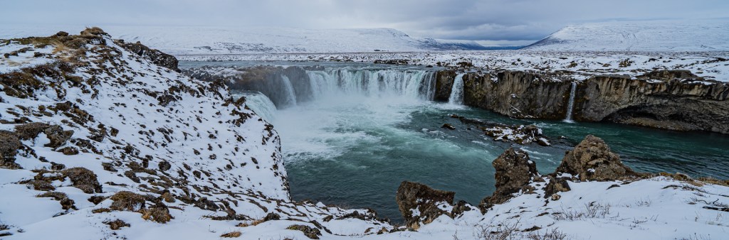 Back to the main road and on our way to Godafoss. We had stopped at this impressive waterfall on the way to Myvatn but had blizzard conditions that day and had only looked at the one side of the waterfalls. As at Detifoss, the side we hadn’t yet seen was the ‘preferred’ one. We were ready to see both.