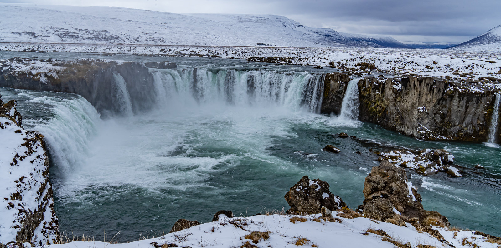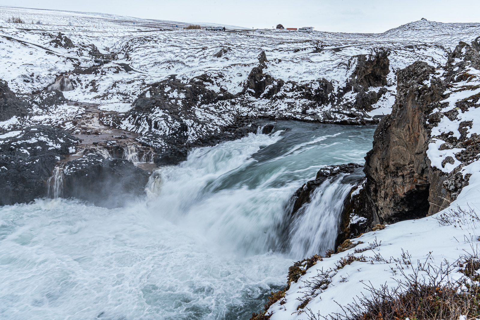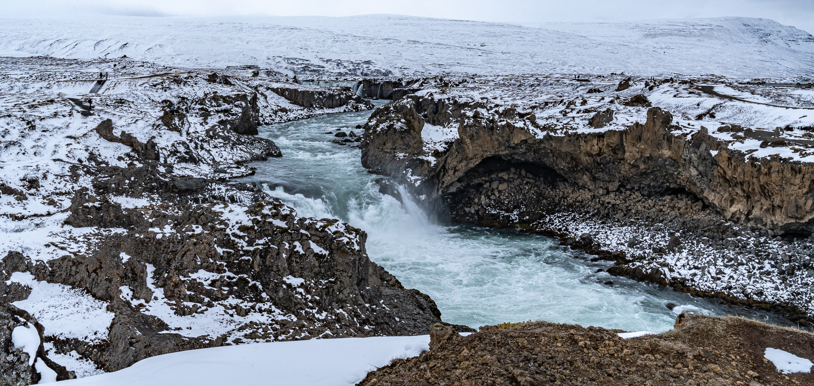 Back to the main road and on our way to Godafoss. We had stopped at this impressive waterfall on the way to Myvatn but had blizzard conditions that day and had only looked at the one side of the waterfalls. As at Detifoss, the side we hadn’t yet seen was the ‘preferred’ one. We were ready to see both.