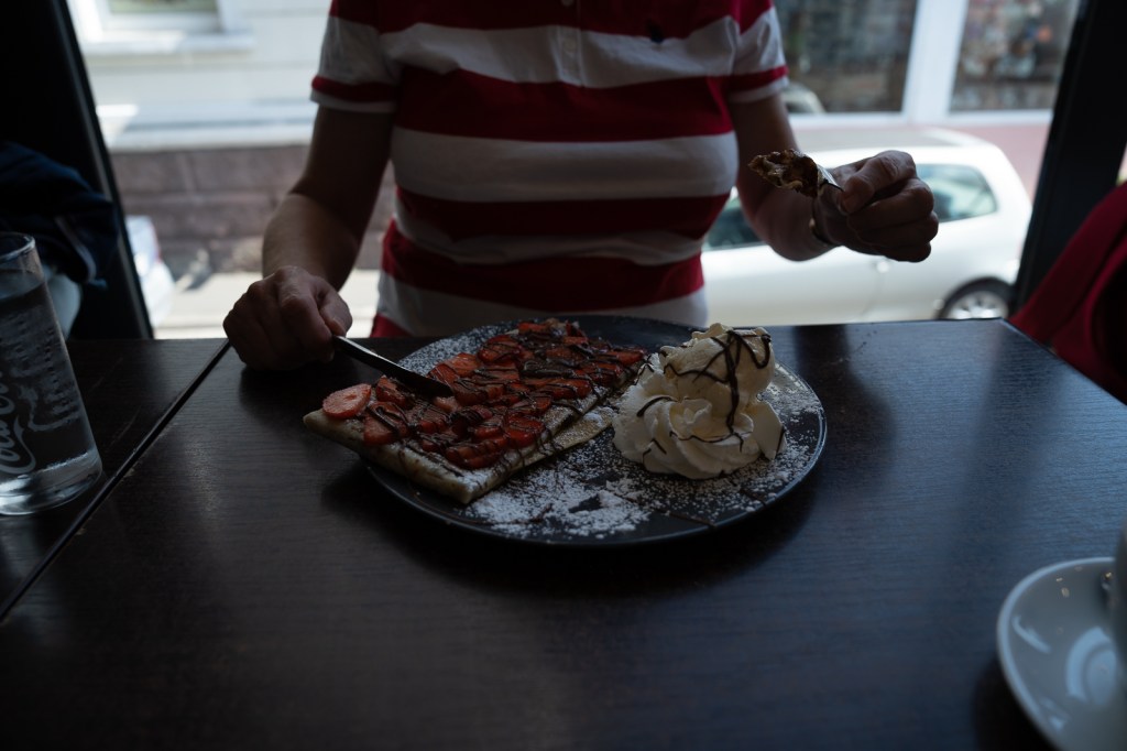 Lunch was easy: we found crepes filled with strawberries and nutella and covered in chocolate sauce!
