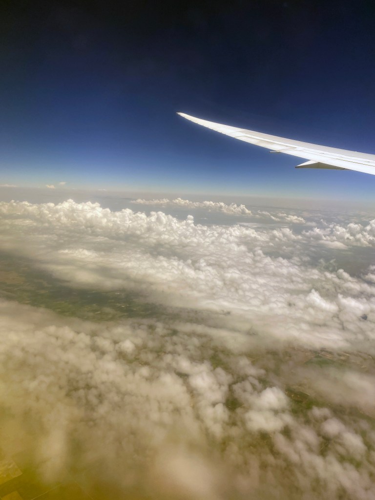 Having joked on the way to the airport about not wearing anything long sleeved and hoping it wouldn’t be too cold on the flight, it was somewhat ironic to have boarding delayed for a few minutes while they cooled the plane down – ‘currently the temperature is too high to be comfortable’!! Once on board, though, everything was very smooth despite some turbulence over the Atlantic.