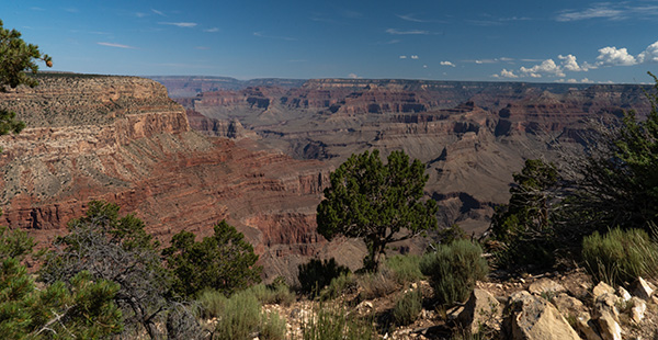 We were still a good way from the Grand Canyon! When we realised that we were at the entrance we assumed Grand Canyon Village where we were staying would be ‘just round the corner’ – Oh No!! The Ranger on duty at the entrance said calmly: ‘the first viewpoint is just a few yards ahead and then you will drive another 32 miles to Grand Canyon Village which is the hub of things on the South Rim… so the sight-seeing began!