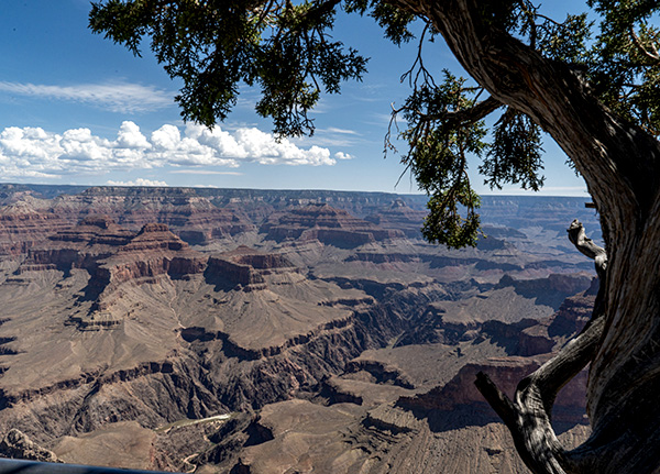 We were still a good way from the Grand Canyon! When we realised that we were at the entrance we assumed Grand Canyon Village where we were staying would be ‘just round the corner’ – Oh No!! The Ranger on duty at the entrance said calmly: ‘the first viewpoint is just a few yards ahead and then you will drive another 32 miles to Grand Canyon Village which is the hub of things on the South Rim… so the sight-seeing began!