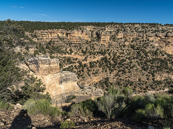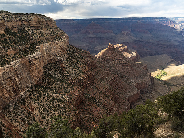 Still staggered by the depth of the canyon, we moved along to the next viewpoint where glimpsing the Colorado River at the bottom is easier – but it is just a glimpse!!