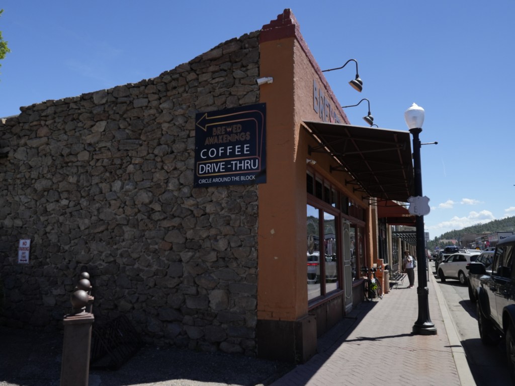 We drove through the last part of the park, past the airport where there seemed to be a lot of early morning helicopter activity (we think it may have been associated with a man dying by falling – or throwing himself – from the skywalk on the west rim) and made our way through the forest to the small town of Williams. What a joy that was!! The first real community since West Yellowstone and some characterful streets, helpful people and interesting businesses.
