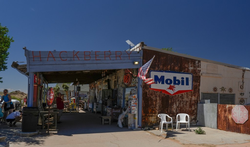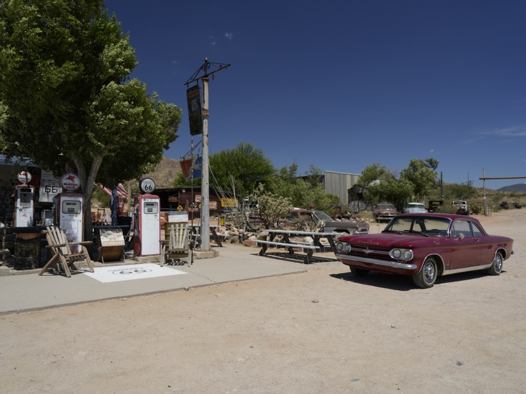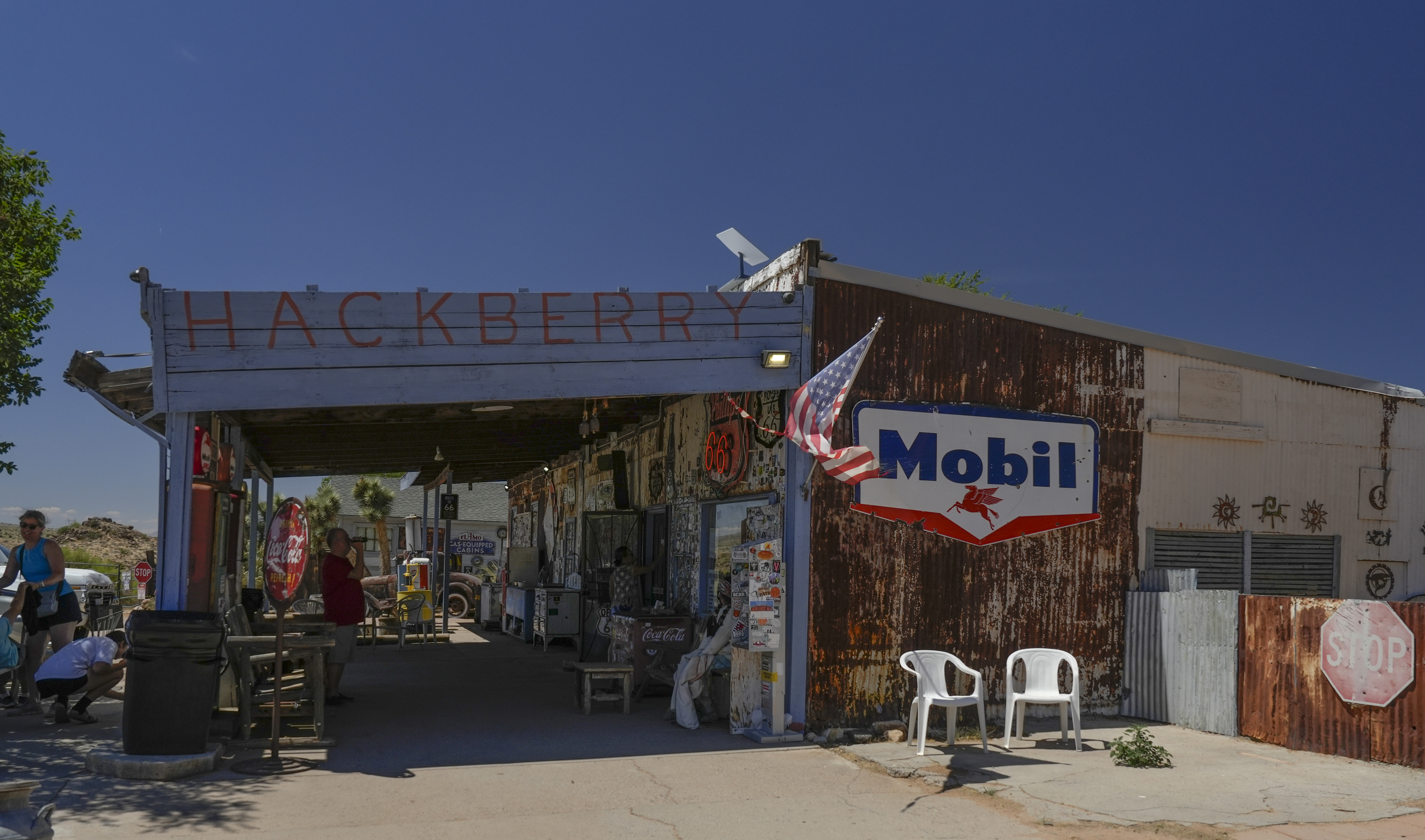 We drove on from Seligman looking out for Hackberry General store which is one of the landmarks along Route 66. The road itself passed through a few communities and by-passed others. There were long stretches of yellow fields – dry fields, not healthy crops. The road was quite narrow but was a steady, easy drive. I was disappointed to see a sign off to the left for Hackberry. It looked as if we wouldn’t see the General store. But then it appeared on the right and was a great source of ice-cream. There were ‘give away’ Daily Bread ministries Bible reading notes, too.