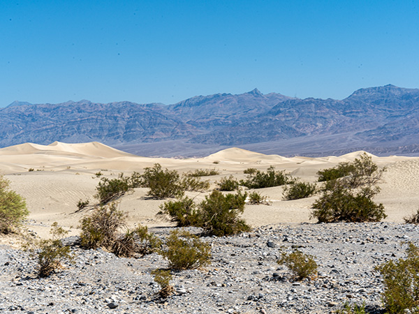 On the road out of the valley, we stopped at the Mesquite Sand Dunes. By this time it was 10am and, despite those dire warnings everywhere, even though they’re not evident in the photo below, there seemed to be large numbers of families about to enjoy some time in the dunes. I heard one young woman say, ‘We come here often. This isn’t bad.’