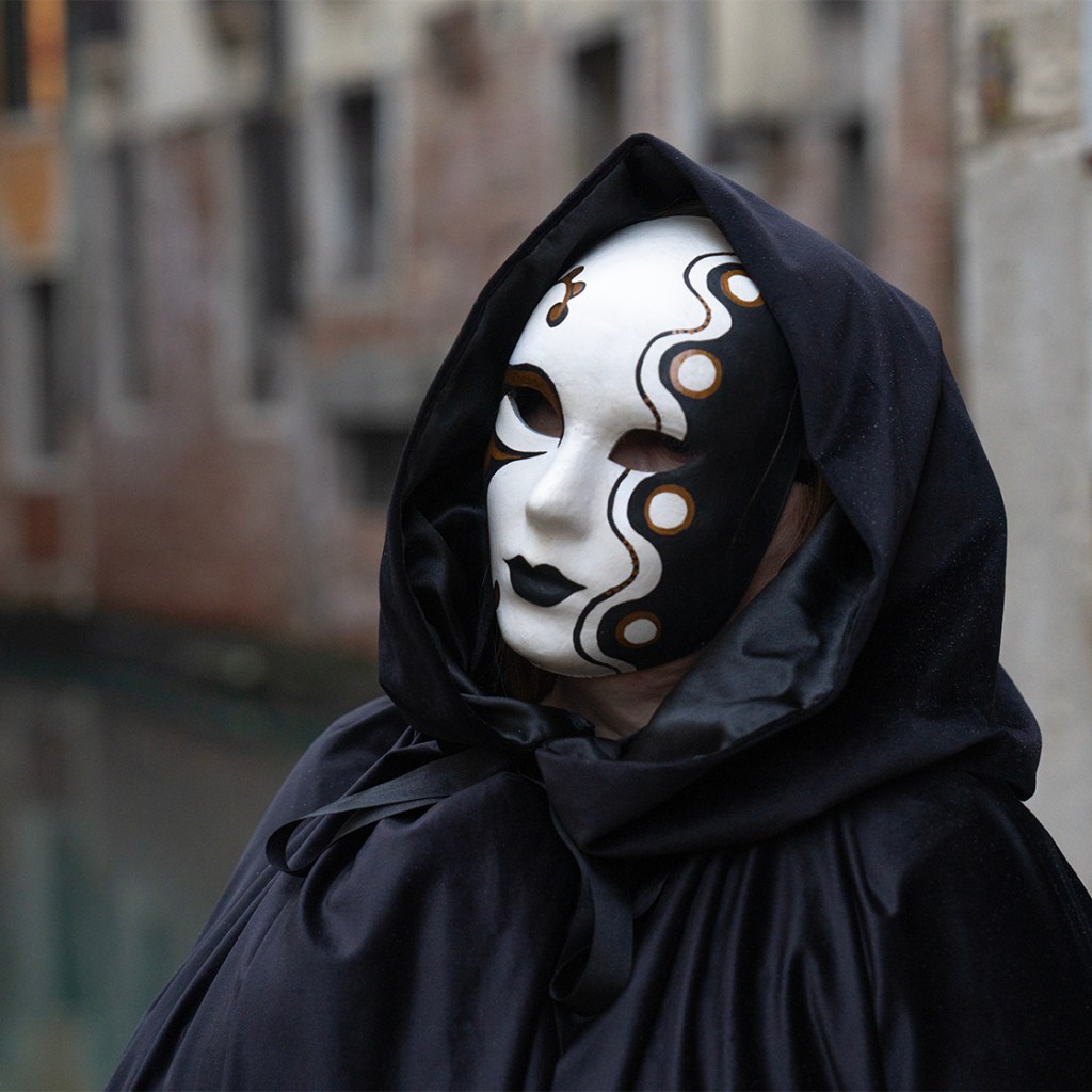 Through the square, past yesterday evening’s trattoria and on to the mask shop. What a treasure trove!!