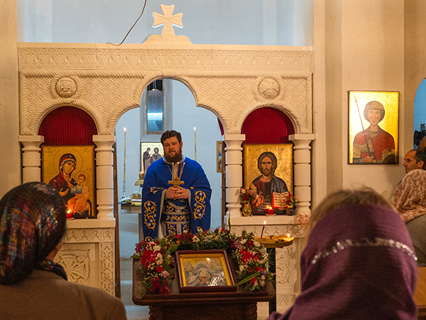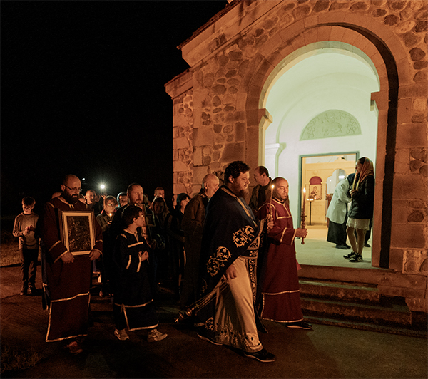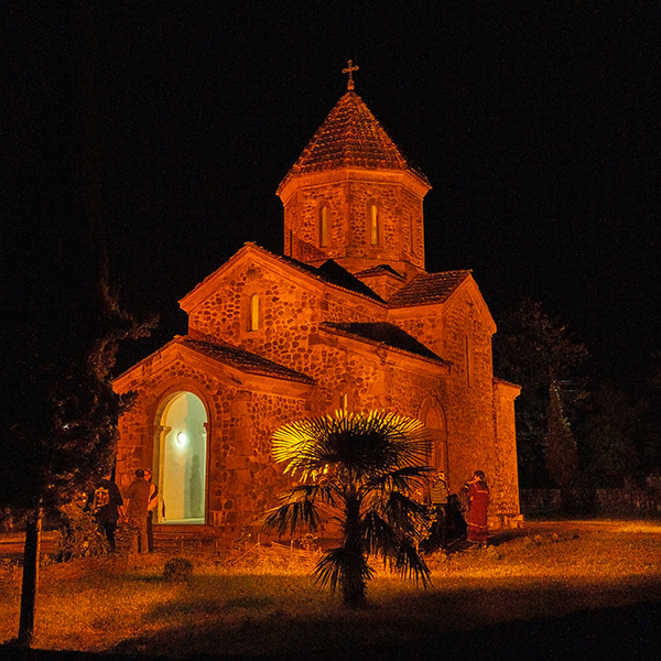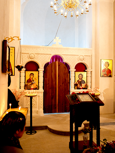 At midnight the icons were processed around the outside of the church three times with the whole congregation involved. Before leading them back into the church the priest proclaimed ‘Christe aghsdga'(‘Christ is risen’ ) three times, inviting the response ‘Chesmaritad’ (‘He really is’) and the mood seemed to change to one of rejoicing.