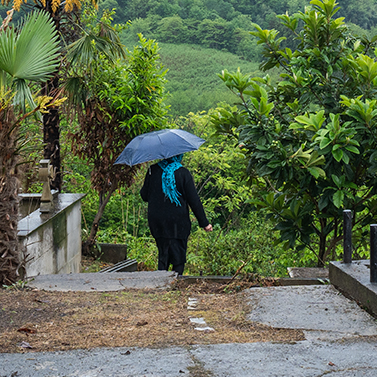 Having given us food and drink for a toast, they were keen to be photographed with even the oldest family member getting up from the step where she was safely sheltering under her umbrella came to join in. Children here will remember even their great-grandparents with traditions like this. The feast includedKhachapuri and salads and paske cake: the best paske cake I’d had so far, topped with a layer of chocolate. Each plot has it’s own table permanently in place for occasions such as this so all they had to do was bring the umbrella to keep them dry on a drizzly Easter Monday.