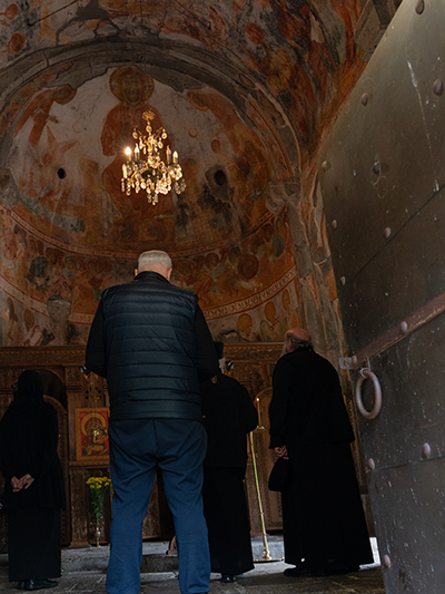 There was a fairly fierce nun around and as we were looking two important looking clerics arrived and made their way into the church, so I took the opportunity of a shot from outside which shows some of the very old frescos – but not the dragon.