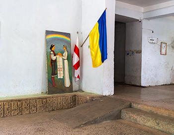 We walked a few hundred yards uphillto a statue of which the youngsters are proud – it reminded me of the flags in the entrance to the school as it is a symbol of their liaison with Ukraine