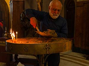 The only real act of service I saw was this elderly man changing the sand so that the candles didn’t create a fire. And, actually, the image here of the body of the church is much brighter than it actually felt during our visit.