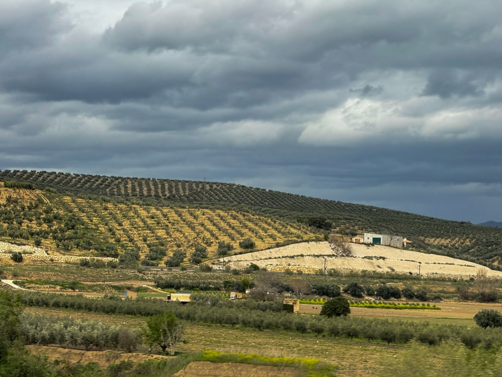 We had passed through immigration, collected our luggage and were out of arrivals within about half an hour, so even had time to eat a sandwich before checking that we could get our bus at the airport (the tickets said ‘Malaga’ which I had assumed meant any point in Malaga, but I was advised that we should go to the central bus station. That was easy, too – a local bus goes direct and cost 5euros, dropping us with about 10 yards of the spot where our bus would arrive. Granada was though quite a hilly area with lots of fruit trees: very photogenic had there been an opportunity to stop.