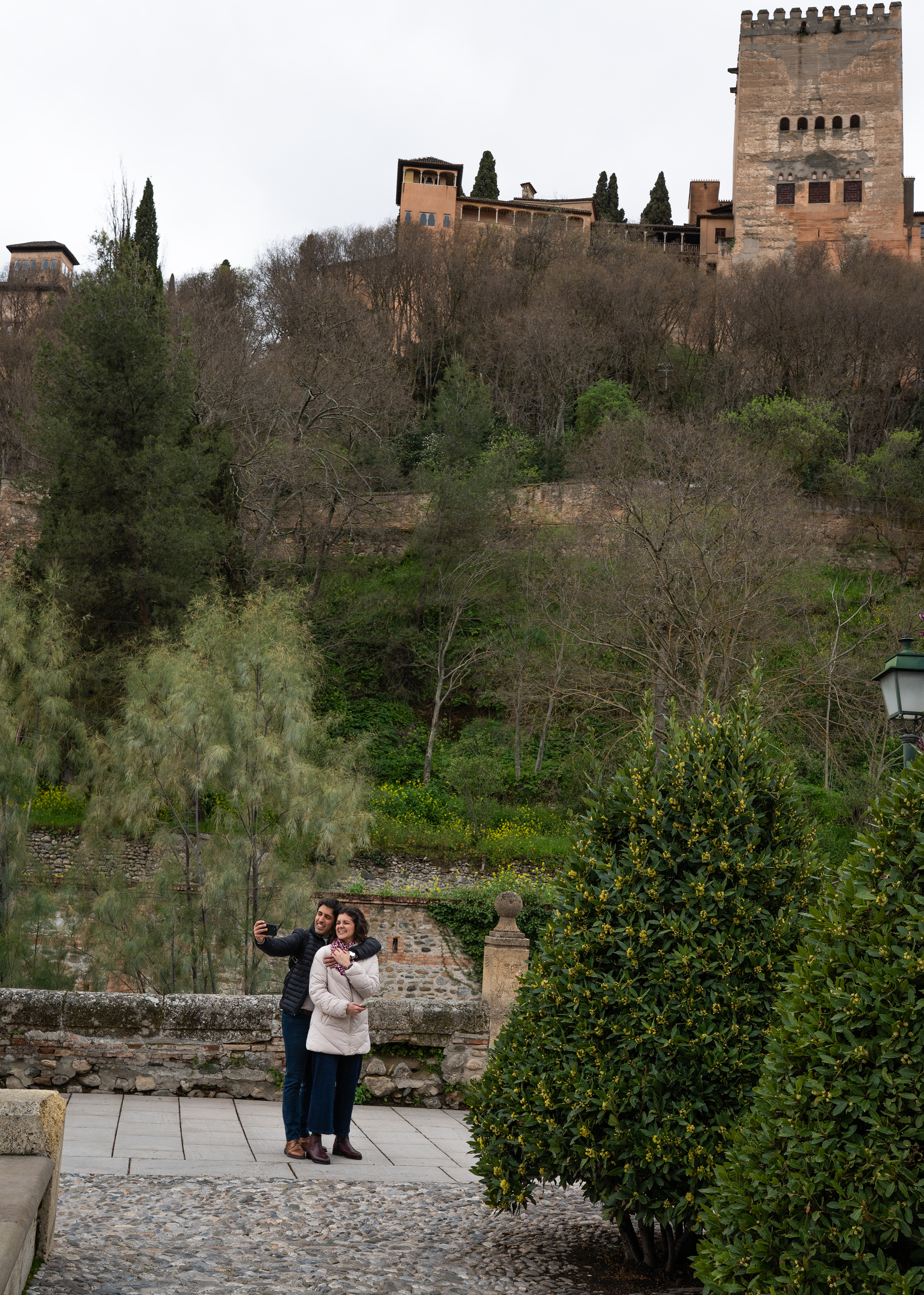 Soon we glimpsed the first views of the Alhambra which would dominate the skyline for much of the rest of the day. And many groups and couples doing what is done at iconic sights: making the selfie memory.