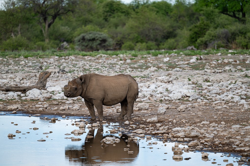 Looking at him as he drank we saw that his horns had been removed and there seemed to be a few injuries. The horns are taken to protect the animals from being hurt by poachers but it’s very strange – and somewhat sad – to see a hornless rhino.