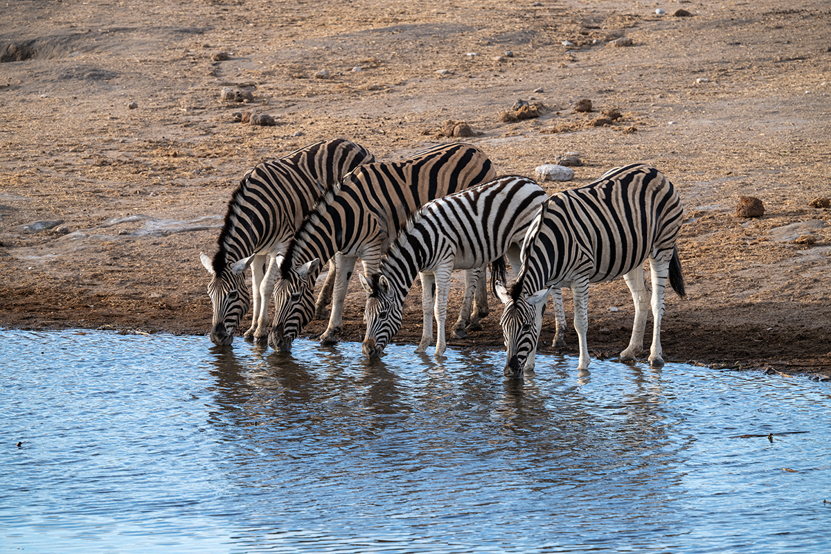 The zebra obliged by coming to drink at a waterhole as we watched, too.