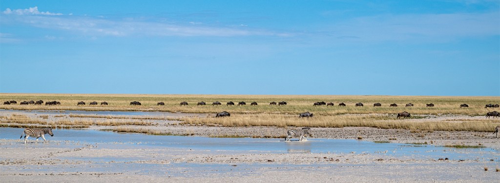 Renowned for its wildlife, Etosha covers a very large area of Northern Namibia and was set up as a national park in the mid- twentieth century. Currently, though, the unusual weather seems to be creating different patterns of behaviour in the animals.