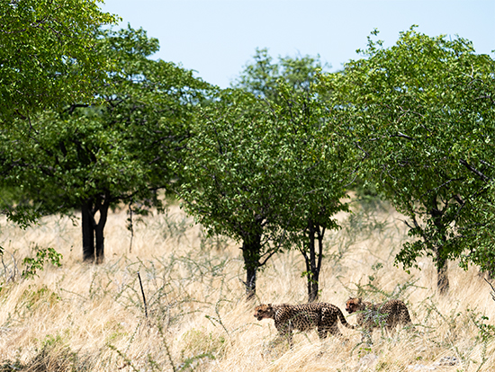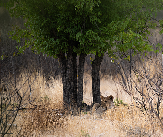 First, a cheetah stood up out of the bushes to catch a small impala some distance behind us and then a small pride of lions appeared under a tree. For elephants, we had to wait until later in the evening at the Okuakuejo waterhole (the one that has a live stream) where seventeen elephants appeared.