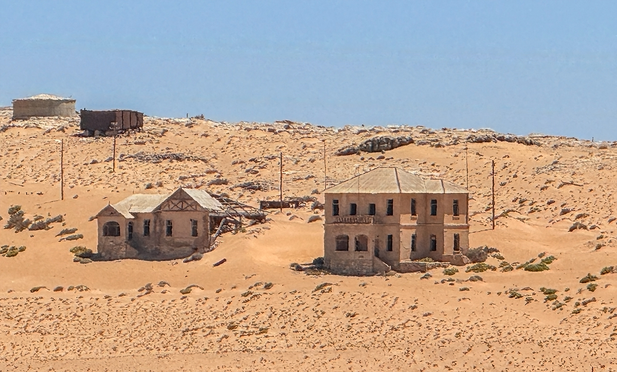 Driving in to Luderitz we caught our first glimpse of the famed town of Kolmanskoppe.